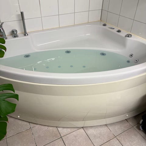 Bubbelbadkar som ny med belysning och dusch vägg