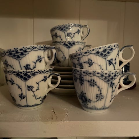 Royal Copenhagen kaffekoppar med fat blåvit porslin