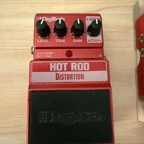 Fungerar fint trots ytliga skavanker! Box och pedal ingår men tyvärr inte elsladd.