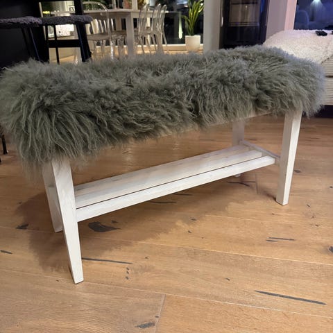 Fin hallbänk med fårskinn. Inköpt för ca 5 år sedan på Mio. Den har inte används mycket.