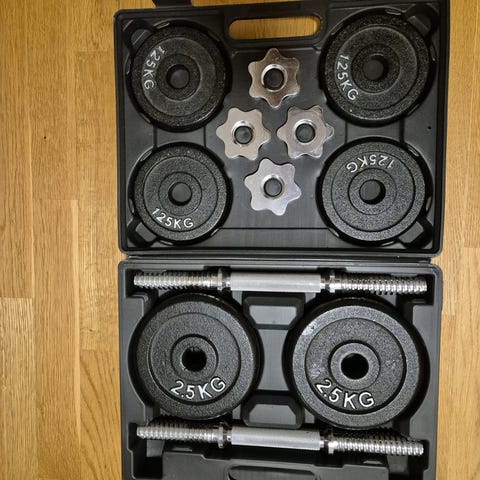 Skivstång och 2 st hantlar