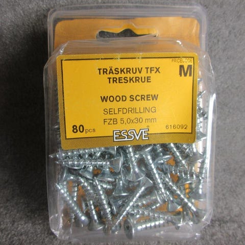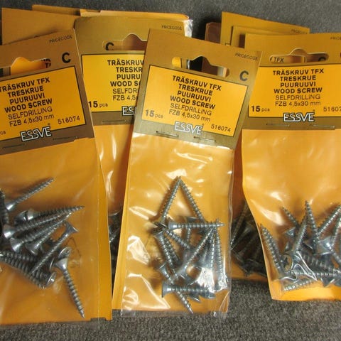 En helt oöppnad låda med träskruvar från ESS DRIVE