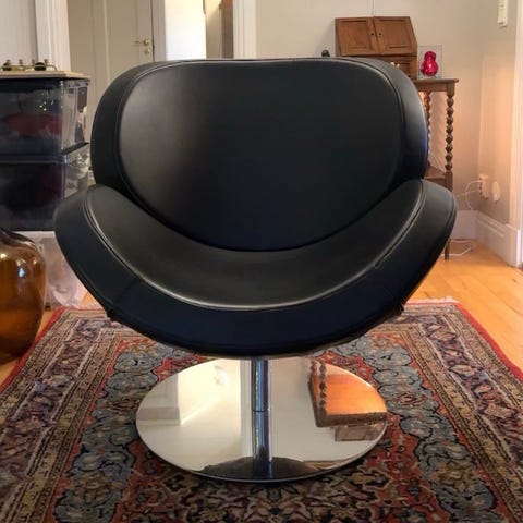 Väl omhändertagen och i mycket gott skick. Inga sprickor i lädret och sitsen är stadig och bekväm.