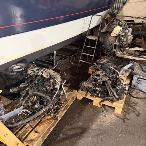Bild 5 - Delar till motor som EGR, insprutning, kablage, eletroniklåda, grenrör, fläkt, kåpor och dylikt tillhörande ett av motorerna ingår.