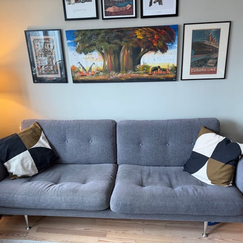 Soffan är i fint skick, hel och fräsch, utan större slitage. Bekväm att sitta i och lätt att matcha med annan inredning.