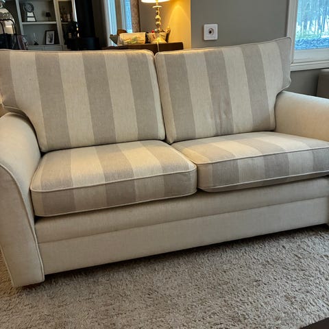 Säljer en bekväm och stilren 2-sits soffa i beige färg. Passar perfekt i både mindre och större vardagsrum tack vare sin tidlösa design och neutrala färg.