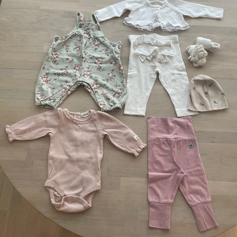Fint babypaket i storlek 56, perfekt som startpaket för nyfödd.