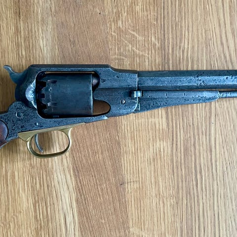Säljer en luftrevolver i westernstil tillsammans med bälte och hölster i äkta läder. Ett gediget bälte med revolverhölster i äkta läder, i klassisk western/cowboy-stil.