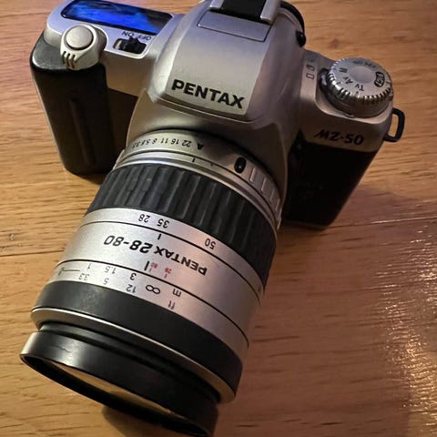 Pentax MZ-60 är en analog kamera. Den kommer med ett Pentax 28-80 mm objektiv. Kameran är avsedd för fotografering med film och har manuella inställningar för exponering.