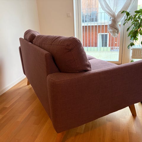 Fin liten soffa, bra skick, användning ses bara på kuddars form.