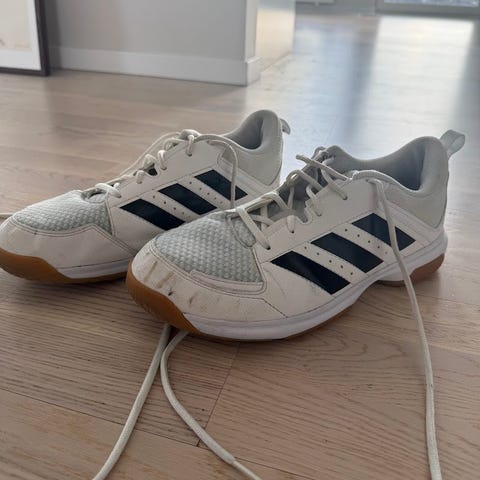 Adidas Spezial i storlek 44 2/3 i nyskick. Jag har använt dem en gång. De är möjligen lite små i storleken, så 44 2/3 är perfekt för mig som oftast har 44 i storlek annars.