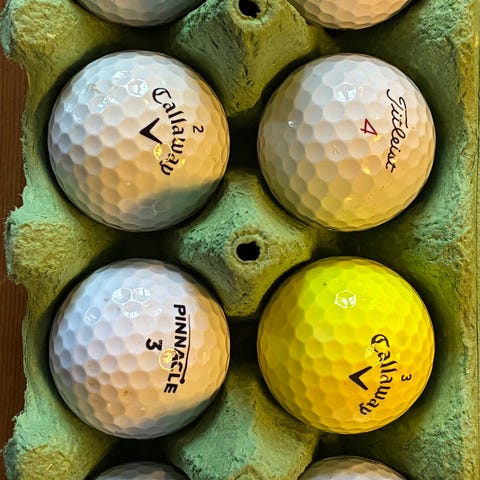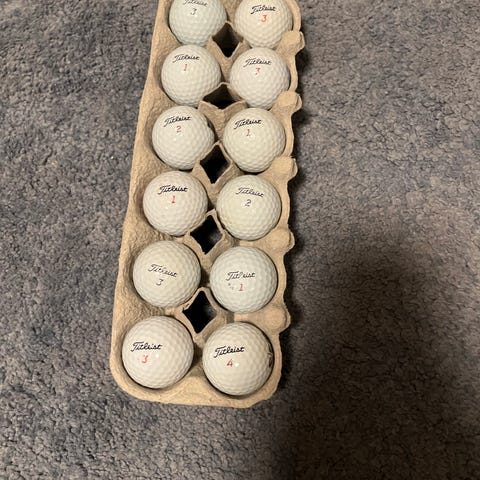 Titleist golfbollar i olika färger inklusive orange, rosa, grön och gul. Bollarna är avsedda för golfspel och har standardstorlek och material. Fint skick!