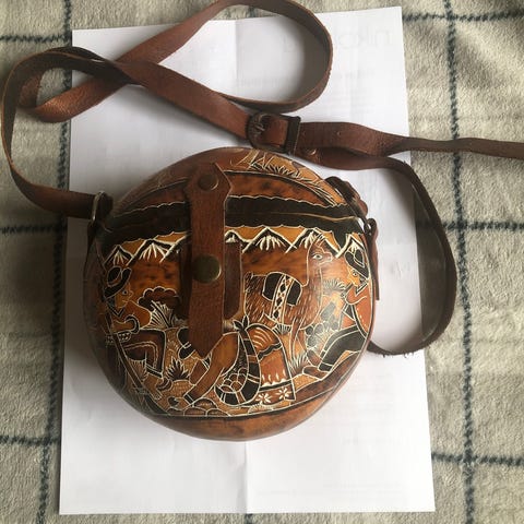 Ryggväska i brunt av lera, Siw Calsson 1994