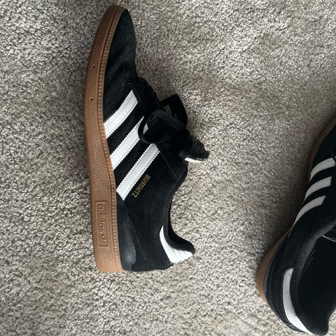 Polo Ralph Lauren sneakers i storlek 47. Skorna är svarta och har en låg profil med snörning framtill. Det finns Polo-logotyp på sidan och text på baksidan av sulan. Passar för vardagligt bruk.