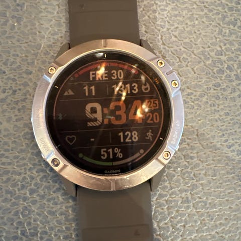 Fenix 6X Pro Solar i braskick. Detta är 51mm-versionen med större skärm än standard 47mm-modellen.