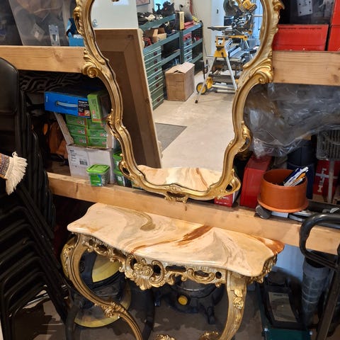 Guld spegel med marmorbord antik
