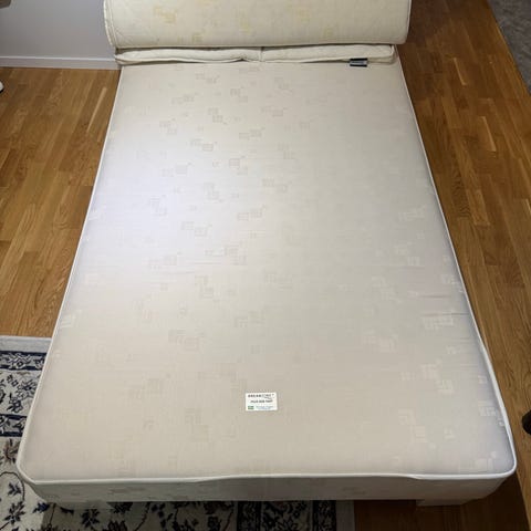 120 resårmadrass med två förvarings lådor och sänggavel. Bäddmadrass ingår ej