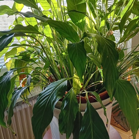 Säljer plastväxt med kruka