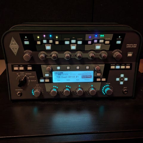 Fractal FM3 Turbo. I mycket bra skick. Mest stått på skrivbordet. Tone Junkie all pack ingår samt över 500 st extra ir från Ownhammer. Sitter skärmskydd och skydd över tryckknappar i plexiglas. Kvitto skickas med och skickas i originalkartong. Är borta i helgen så bilden är lånad från nätet.