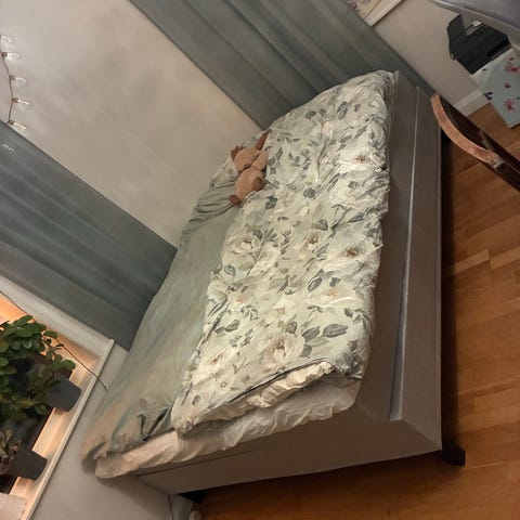 Ger bort vår överblivna 160cm säng, bäddmadrass och gavel.