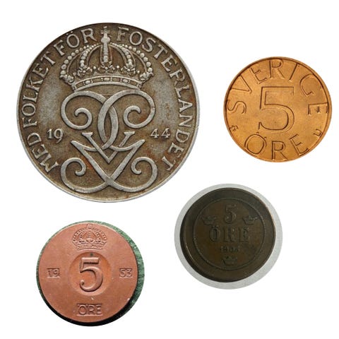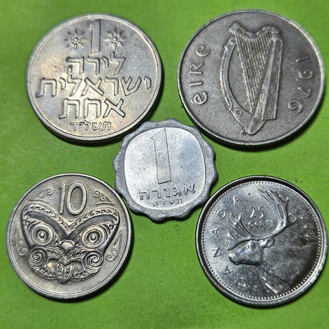Samling av utländska mynt, 6 st