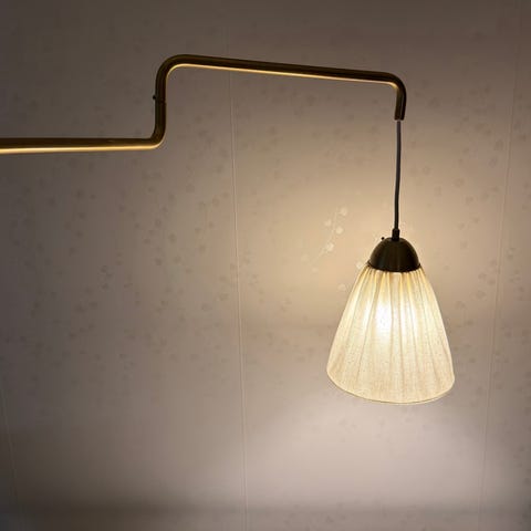 GOLVLAMPA / Glas - Mässing - Teak / Skärm Josef Frank / 1960-tal