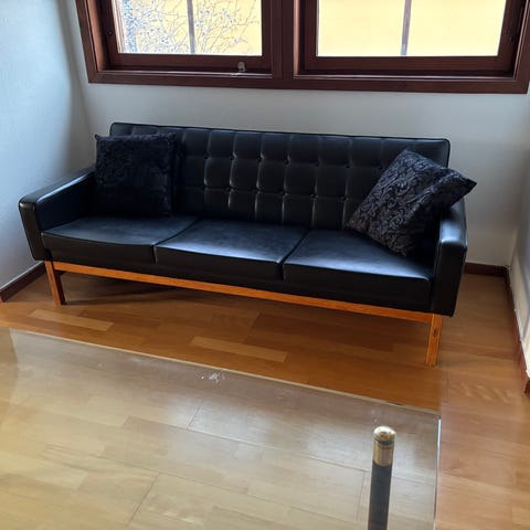 2 sits SOFFA, "Mölle" av AB Stjernmöbler från 1955. Formgiven av Ragnar Helsén, var med i Önskehem-katalogen 1955.