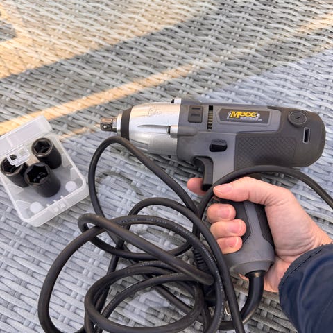 Tryckluftsdrivet universalverktyg för att pressa tillbaka bromskolven i bromsoket. Med hjälp av verktyget kan kolvarna enkelt pressas tillbaka utan risk för att kolven eller gummidamasken skadas, vilket kan bli fallet om man använder sig av vanliga brytverktyg.