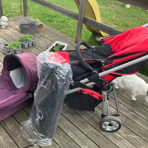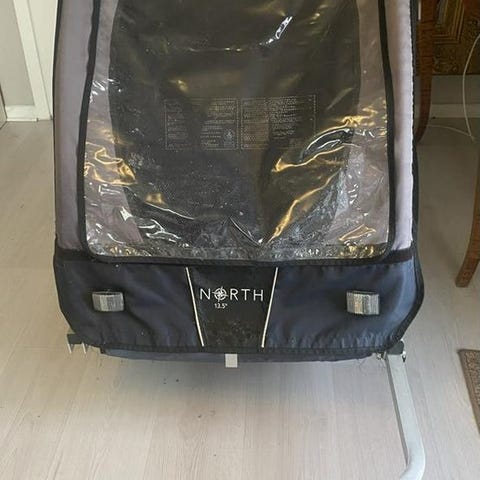 Nordic Cab Explorer cykelvagn i röd färg. Vagnen har plats för två barn och är utrustad med stora hjul för stabilitet. Den är tillverkad i slitstarkt material och har genomskinliga fönster för god sikt. Men är synlig använd! Passar för barn och kan användas för cykelturer.