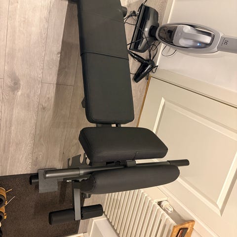 MST Fitness träningsbänk med justerbar ryggstöd och sits. Bänken har en stabil metallram och svart vaddering. Lämplig för styrketräning och hemmabruk.