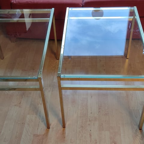 IKEA Aage Petersen sidobord med glasinsats på ovansidan och en hylla under. Bordet är målat i vitt och har en rektangulär form. Användbart som avlastningsbord eller för förvaring i olika rum. Använder som nattduksbord. Som syns på bilden har träet fallt av lite.