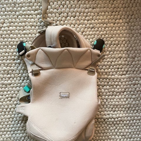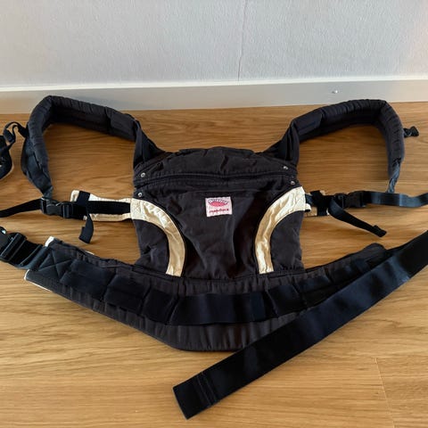 Ergonomisk bärsele för barn från 3,5 till 20 kg. Har varit fantastisk; bekväm, allsidig och lättanvänd. Spännen och remmar och insida i fint skick, yttertyget är blekt men verkar bli det lätt på Manduca.