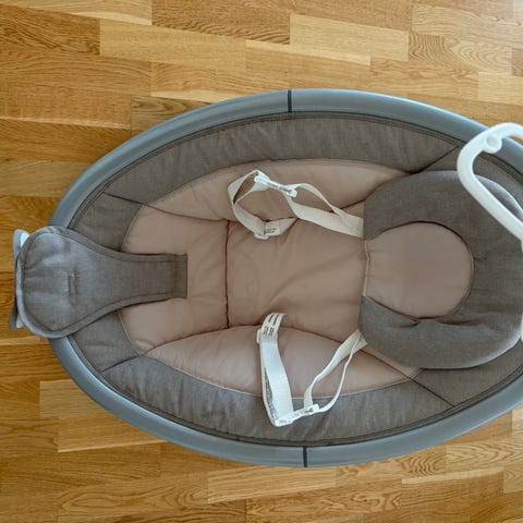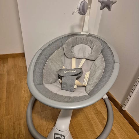 Beemoo PLAY Rocker Low Babysitter är en fin babysitter med stilren design. Gungfunktionen får babysittern att röra sig sidleds och kan ställas in i fem olika hastigheter. Musiken består av flera lugna melodier och volymen är höj- och sänkbar.