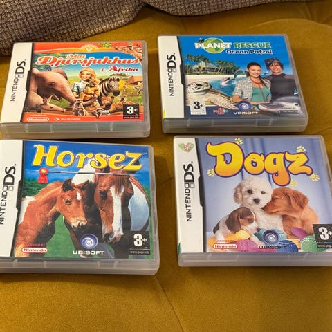 Nintendo DS Nintendogs spel för Nintendo DS-konsol. Spelet fokuserar på att ta hand om och interagera med virtuella hundar.