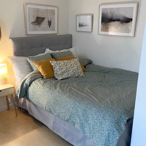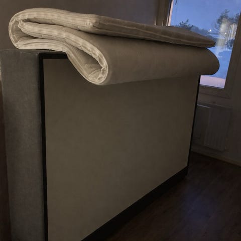 Säng och sänggavel i linne