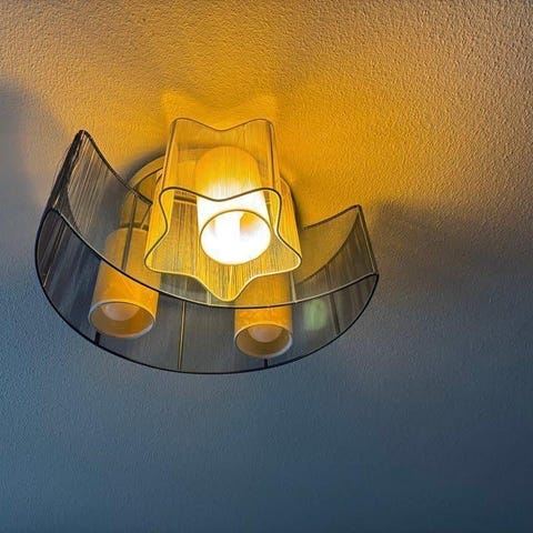 En grafisk taklampa från Globen Lighting i metall som likt en rocka är vågformad i ytterkant. De två skärmarna kan arrangeras på olika sätt - ovanpå varandra eller inuti varandra för att få en lägre pendel med mer täckt ljuskälla. 120 cm lång svart textilkabel med vajer. Höjd 28-52 cm Diameter 70 cm. Lamphållare E27 Max 60W. Design: Patrick Hall.
