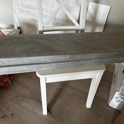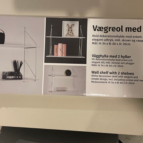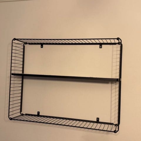 Svart vägghylla. Stabil. Längd 186cm och 26cm bred.