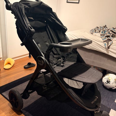 Baby Jogger City Elite 2 sittvagn, barnvagn i grön färg. Barnvagnen har tre hjul med stor främre hjuldesign för bättre framkomlighet. Den är utrustad med sufflett för skydd mot väder och vind samt en vadderad sittdel med säkerhetssele. Passar för barn och är lämplig för promenader och utomhusbruk.