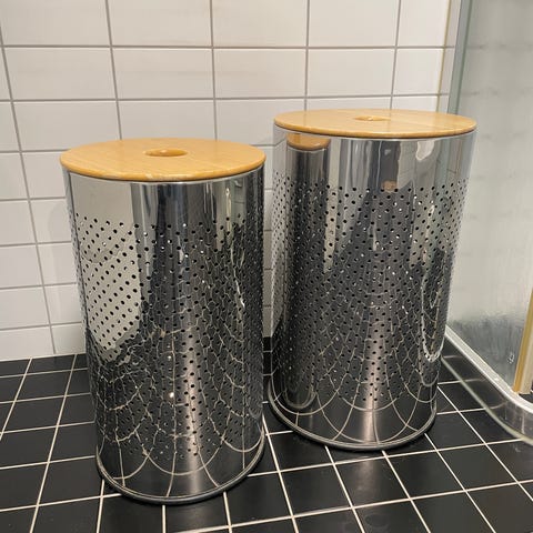 Tvättkorgen med 2 separata fack gör det lätt att sortera smutstvätten utan krångel.