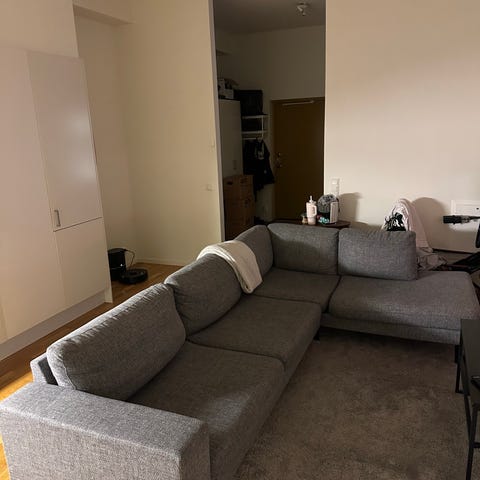 Har stått i ett rökfritt och husdjursfritt hem. Inga synliga slitage, avtagbar tyg på rygg och sittkuddar.
