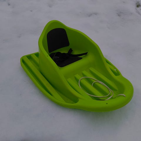 En kälke med stålram, effektiv broms, och utbytbara medar. Lättstyrd ratt och dragsnöre. Pris snowracer 400kr. Hämtas på Sofiehem
