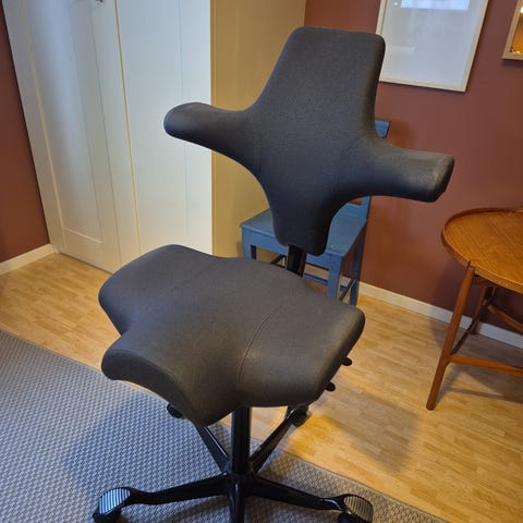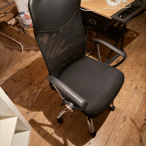 Säljer min gamla norska arbetsstol av märke HÅG från mitten av 1990-talet. Tung som bara den och rejäl, väger nog över 15 kg.