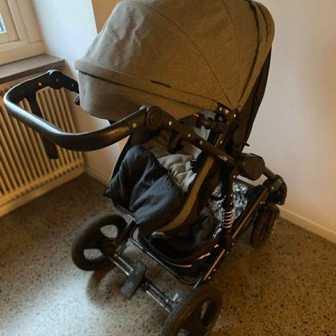 Jättefin barnvagn med regnskydd