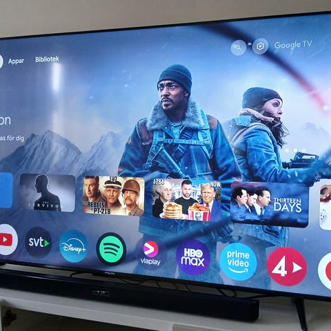 Smart remote and Flat LED panel, 16:9 format, VESA wall mount support 400 x 300 mm, weight approx. 20.6 kg without stand.