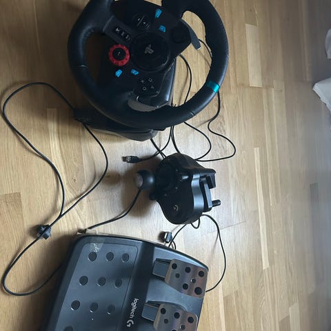 Säljer komplett Logitech G29-setup med ratt, pedaler (gas/broms/koppling) och manuell växelspak.