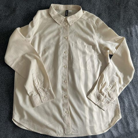 H&M skjorta i vit färg, storlek 38. Tillverkad av polyester. Designad för kvinnor.