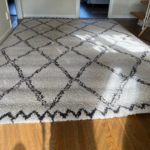 Handknuten matta med blommönster i färgglada toner