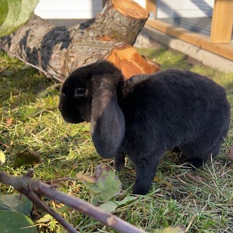 Kanin är 10 månader gammal och han är lugn och frisk och väldigt snäll ,