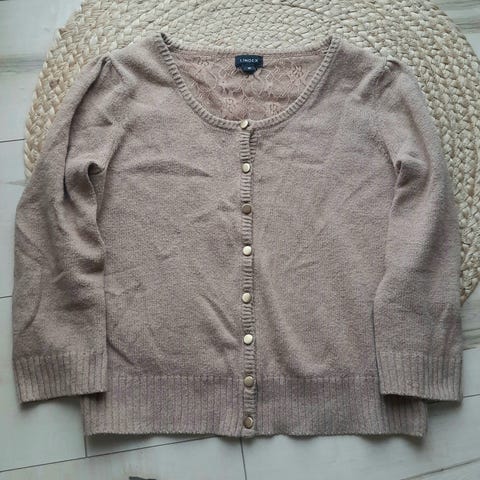 H&M Koftor i storlek M, flerfärgad och tillverkad i polyester. Plagget är avsett för kvinnor och har en stickad design med dekorativa detaljer längs kanterna.