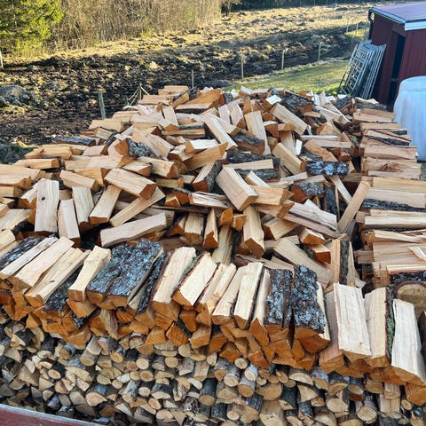 Säljer 1 slängd/övrig kubikmeter ved för 700 kr.